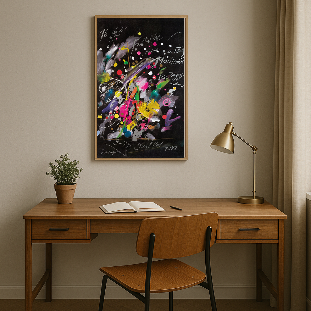 Aujourd’hui, cette affiche sérigraphiée est recherchée tant par les collectionneurs d’art moderne que par les passionnés de jazz et de Montreux. Elle incarne une rencontre unique entre la liberté créative de Tinguely et l’esprit légendaire du festival.