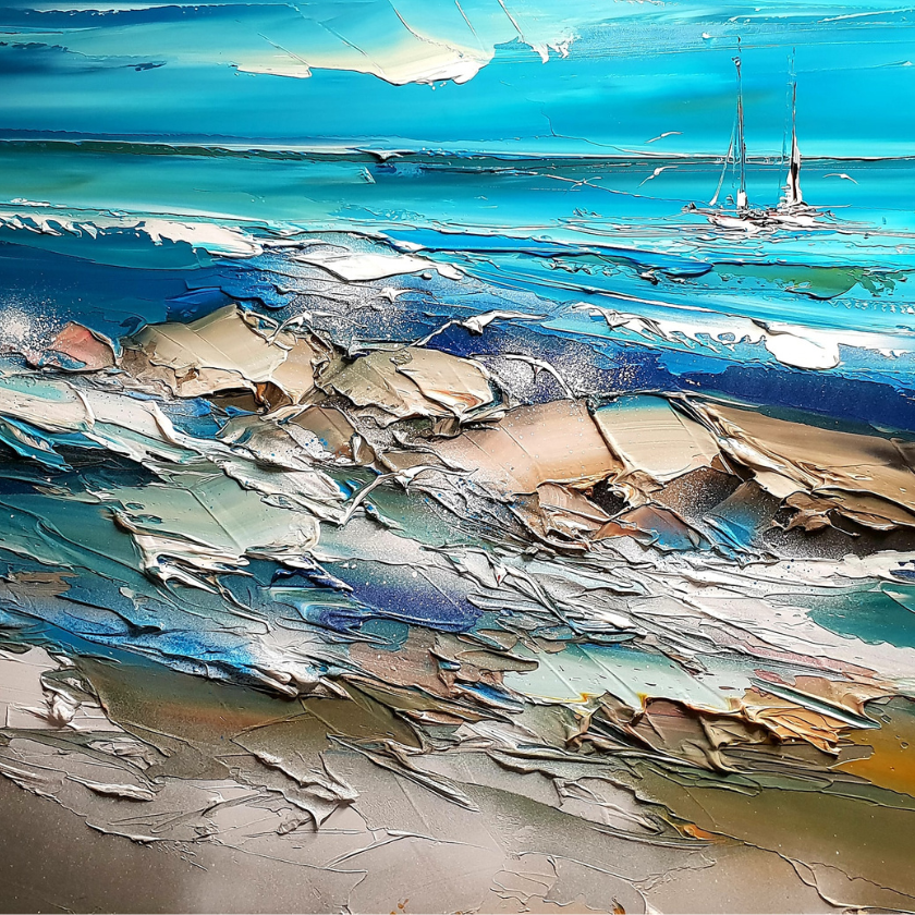 Chaque détail témoigne d’une recherche d’équilibre entre mouvement et immobilité, entre couleur et lumière. Une invitation à la contemplation.