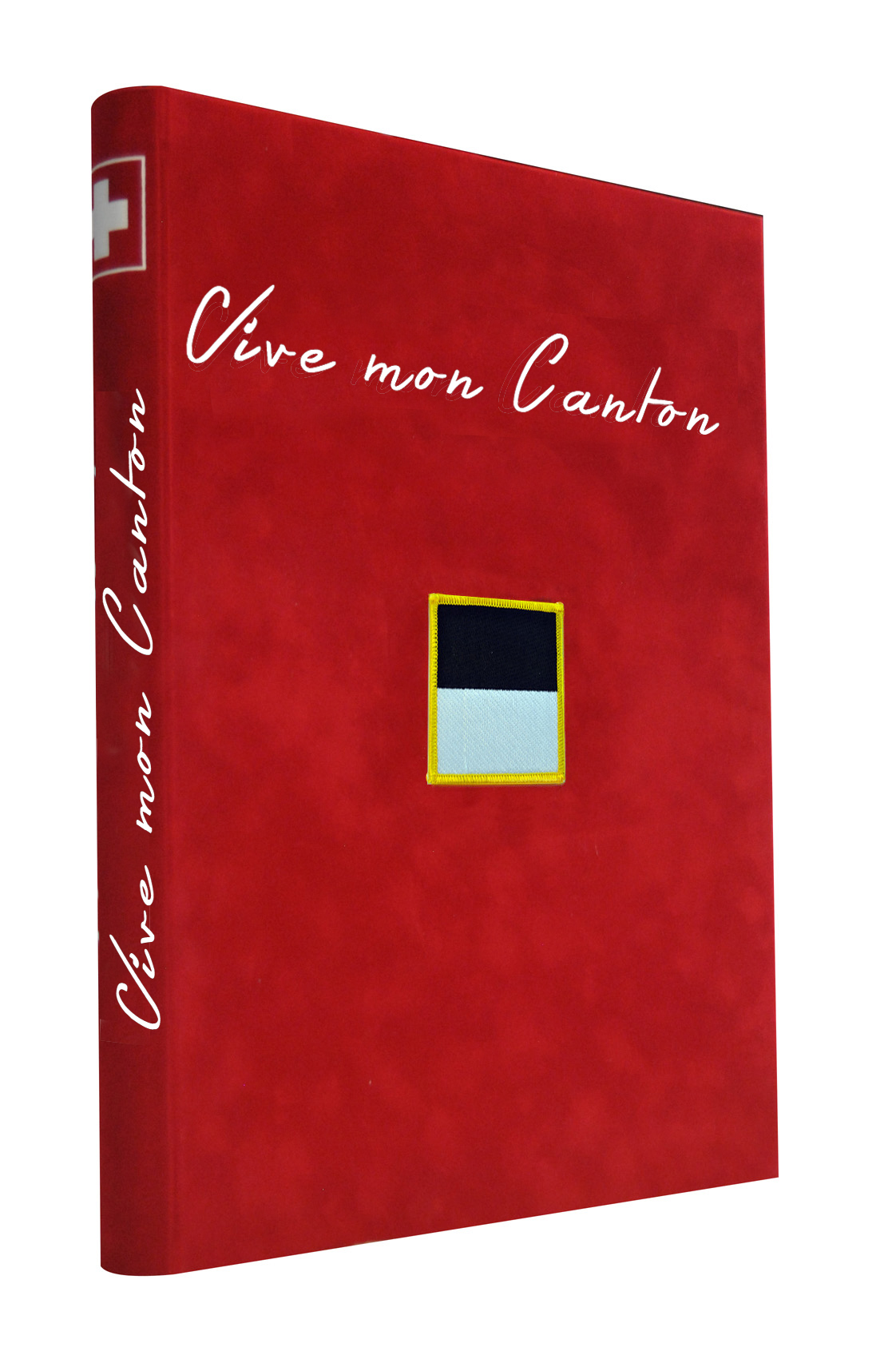 Luxueux coffret en velours rouge avec écusson brodé aux couleurs du Canton