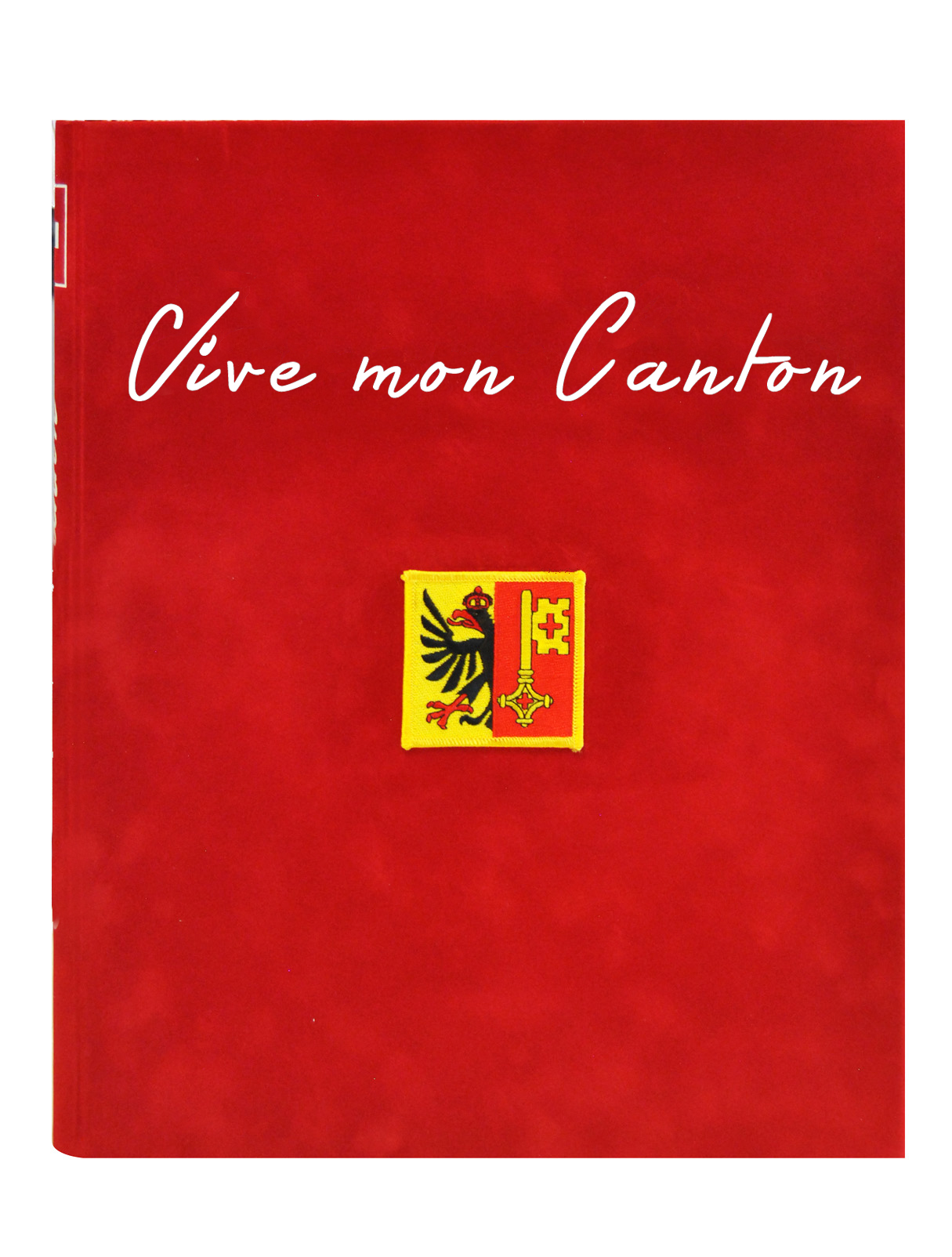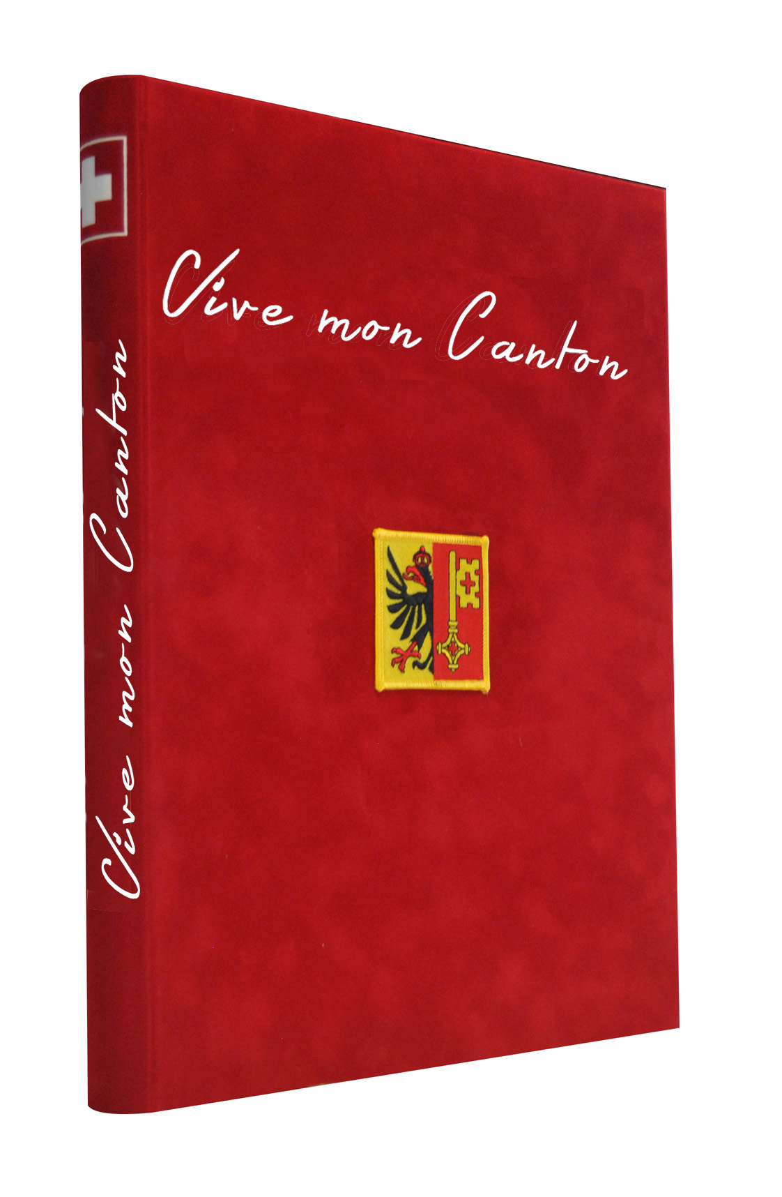 Luxueux coffret en velours rouge avec écusson brodé aux couleurs du Canton