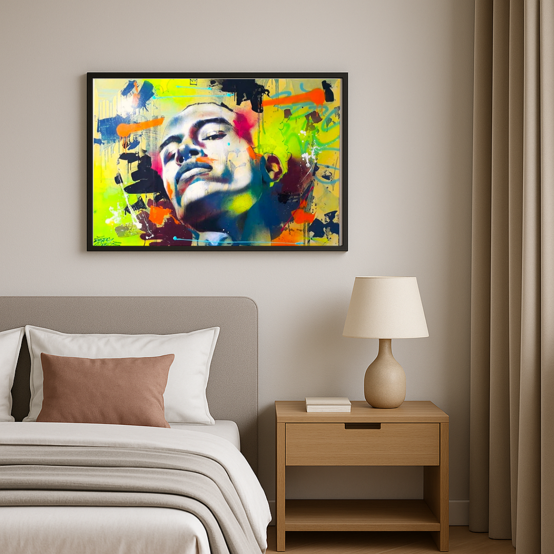 « Eyes Contact » incarne cette dualité, entre contrôle et explosion, entre regard affirmé et déconstruction du réel. Une œuvre forte, à la fois contemporaine et universelle, qui trouve naturellement sa place dans toute collection d’art urbain ou d’art contemporain engagé.
