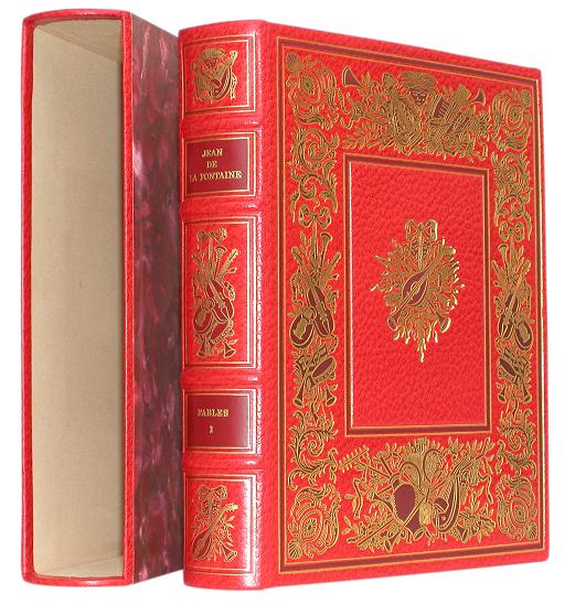 Les 242 fables y sont sublimées par les illustrations originales d’Henry Lemarié, miniaturiste de talent dont les compositions lumineuses accompagnent avec délicatesse l’esprit moral et poétique de La Fontaine. Chaque page, imprimée sur un papier de luxe, témoigne d’un savoir-faire artisanal rare, où la typographie, la mise en page et l’iconographie s’unissent dans une parfaite harmonie.