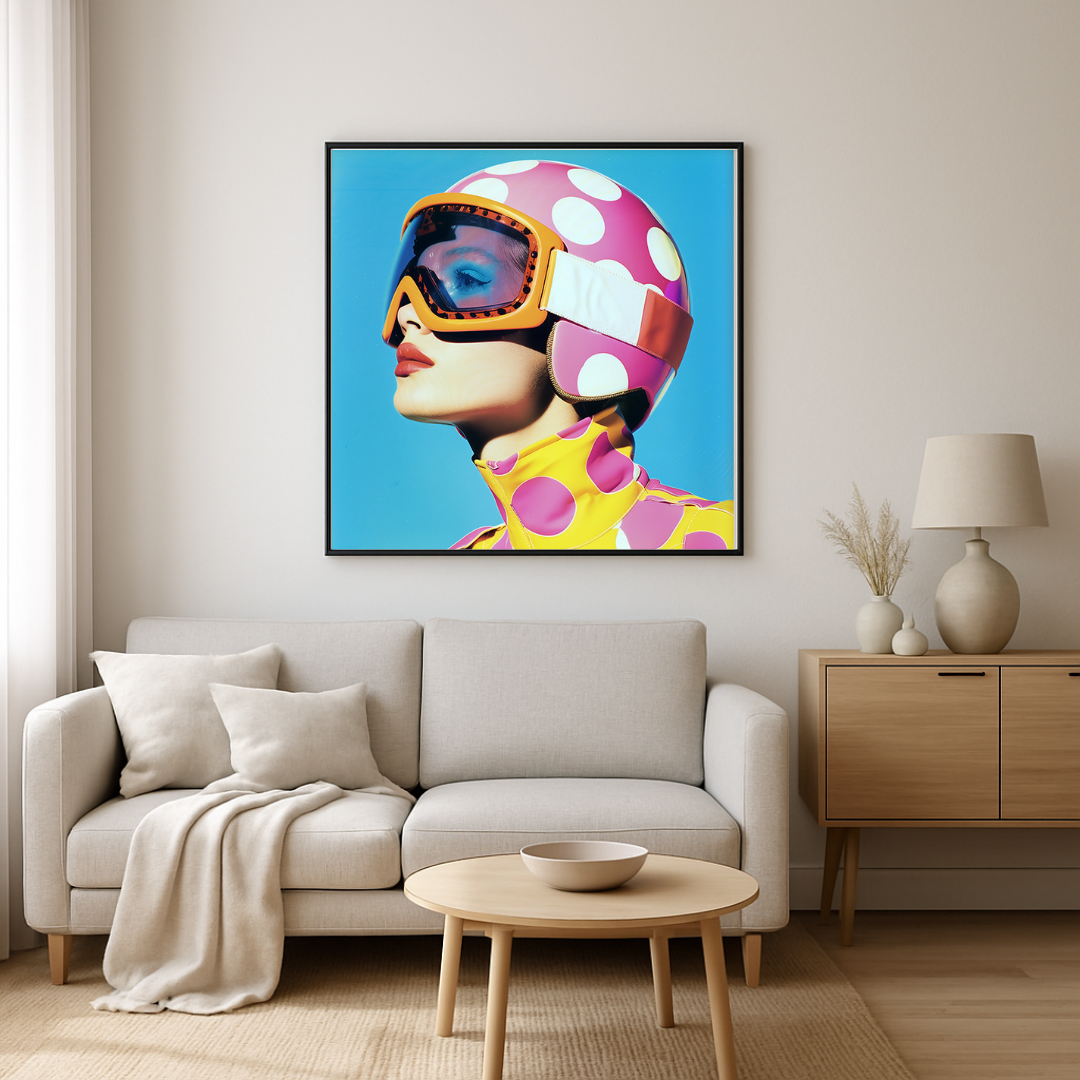 Imprimée sur Chromaluxe par le procédé de sublimation d’impression, Fashion Ski bénéficie d’une profondeur chromatique éclatante et d’une brillance qui sublime chaque détail. Proposée en formats 60×60 cm, 80×80 cm et 100×100 cm, elle est livrée avec un cadre châssis rentrant, prêt à être exposé.