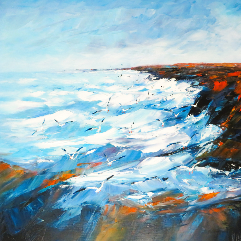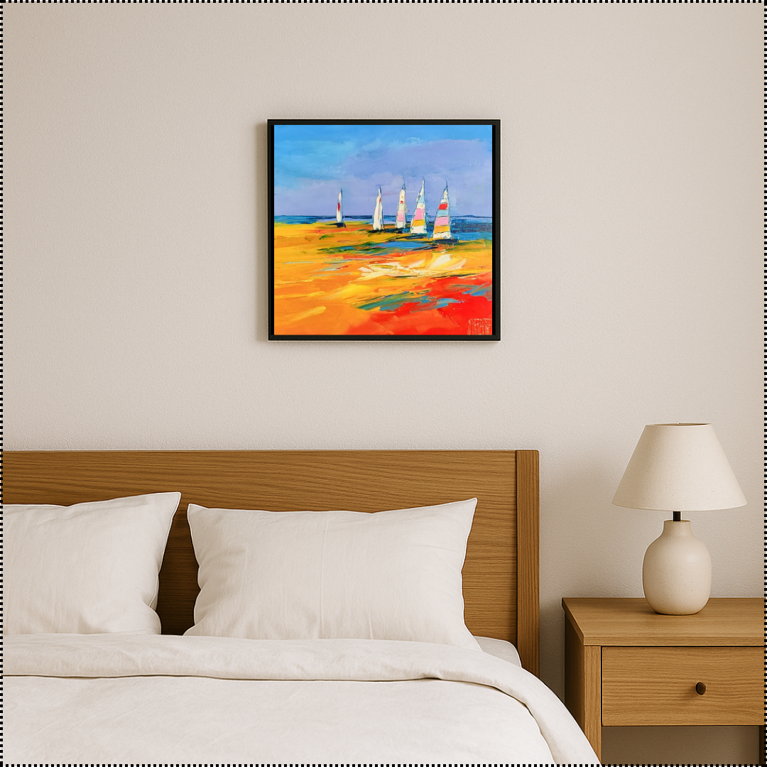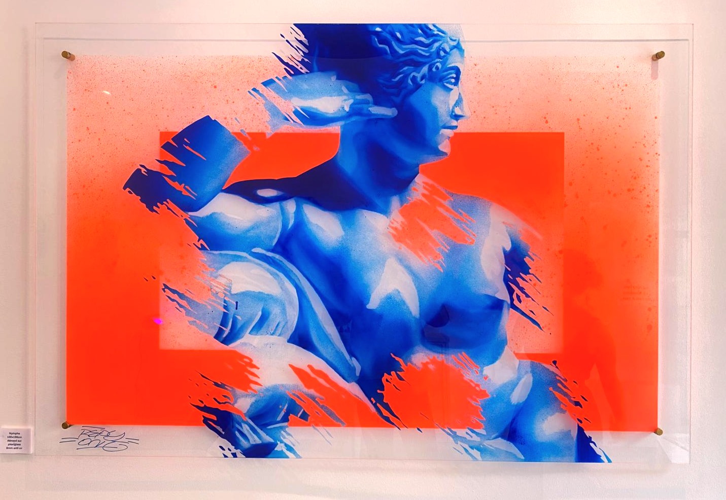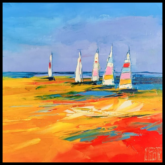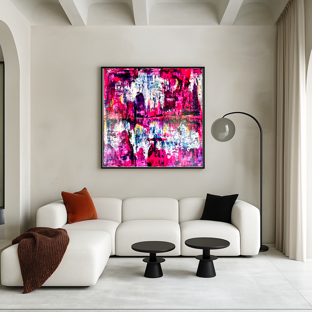Avec Geisha Violette, Christof Monnin nous plonge dans un univers de sensualité et de mystère. D’un geste vif et puissant, l’artiste donne vie à une silhouette féminine élancée, drapée dans des éclats pourpres et orangés qui se mêlent avec intensité. La composition, réalisée à l’acrylique au couteau, fascine par ses textures épaisses et ses contrastes saisissants, où chaque mouvement de la matière raconte une émotion.