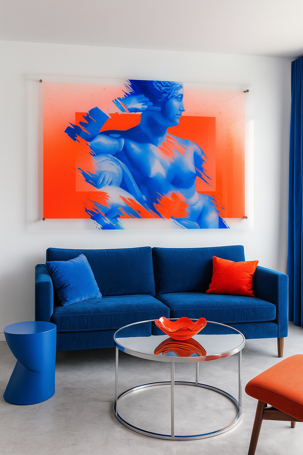 Une pièce contemporaine, à la fois flamboyante et délicate, qui évoque la beauté intemporelle de la féminité à travers la force expressive de la couleur et du geste.