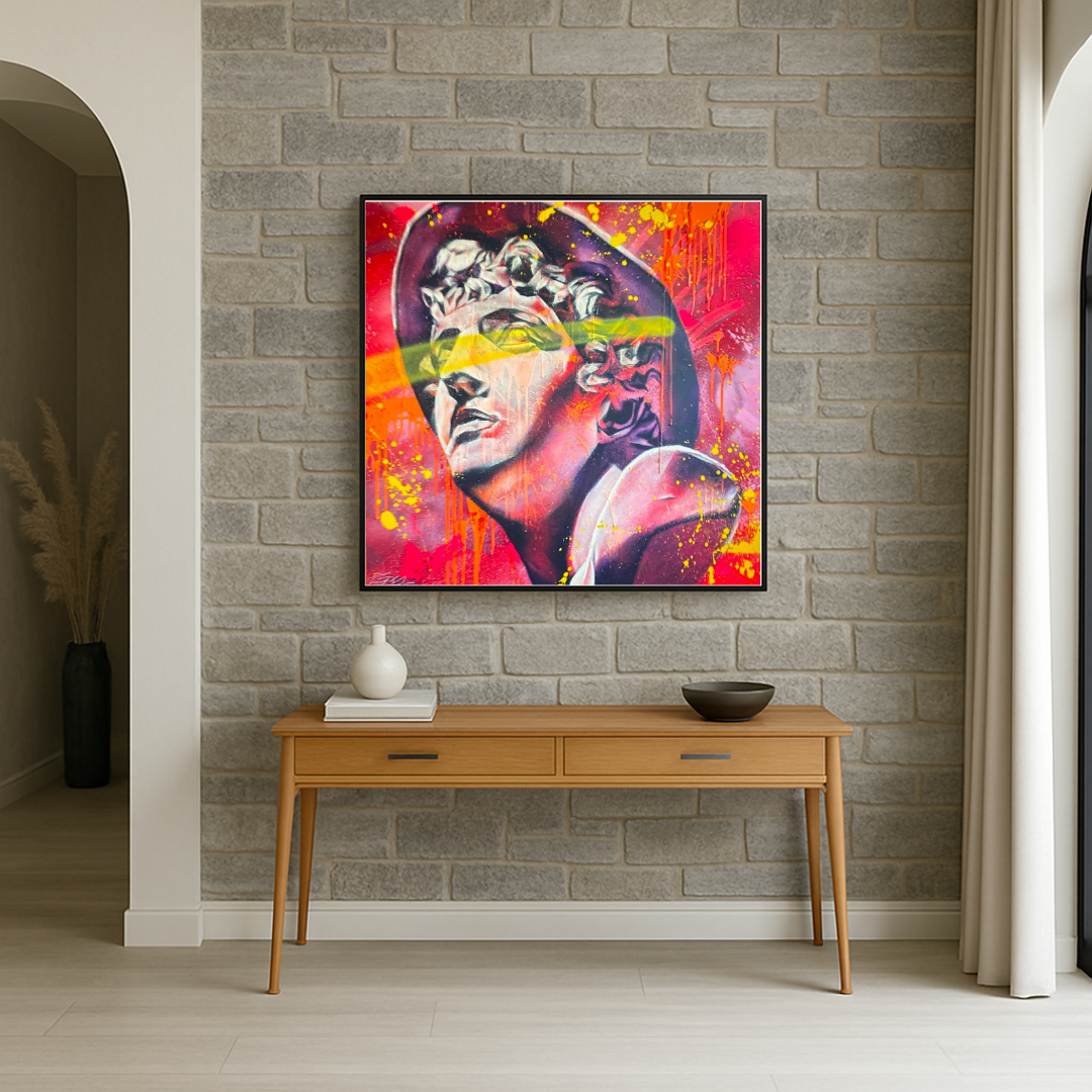 « Hermès » s’inscrit dans la série de Repy One consacrée aux figures antiques réinterprétées à travers le prisme de la culture urbaine. Une œuvre imposante, audacieuse et résolument actuelle, idéale pour une collection contemporaine.