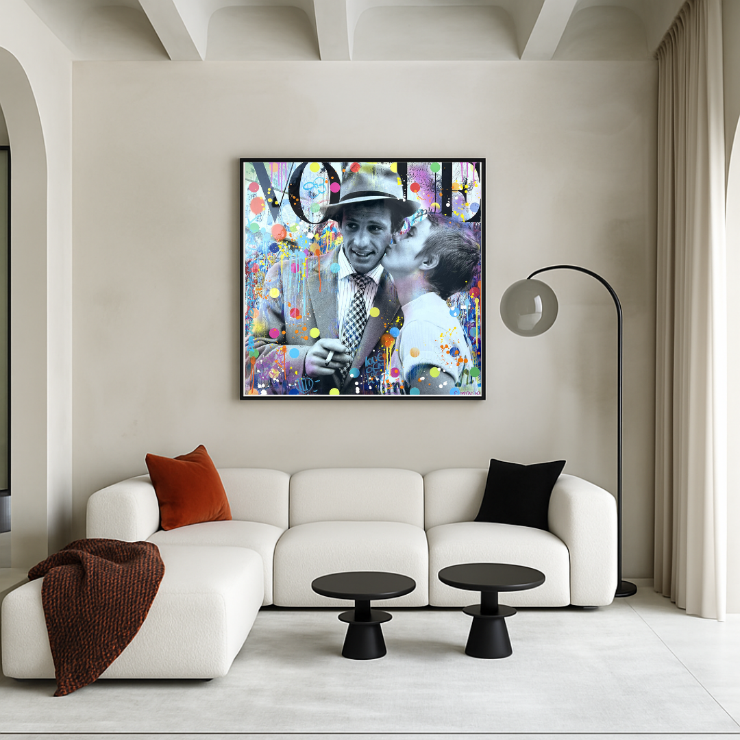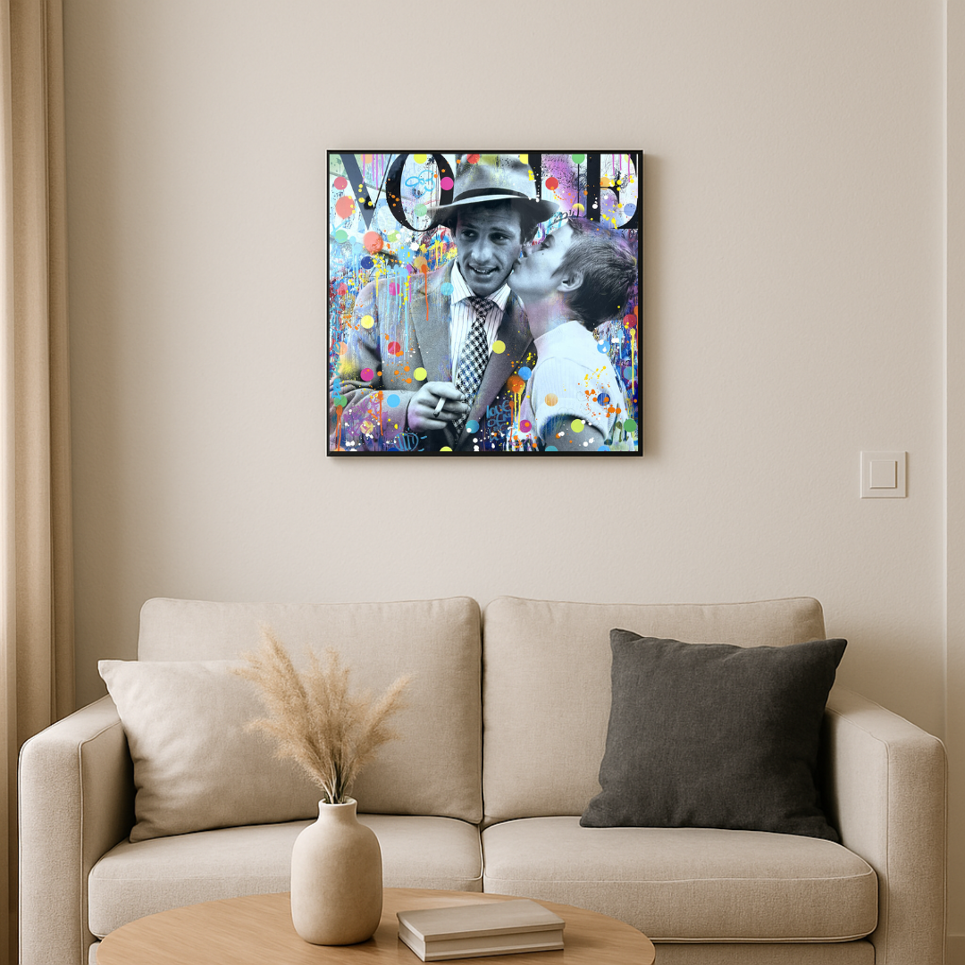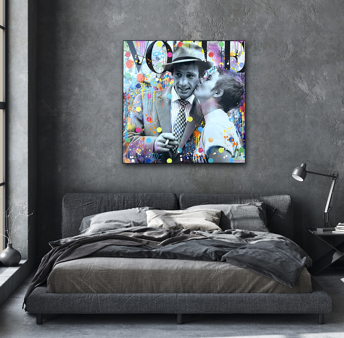 Jean-Paul I Love You de Fabien Novarino est une ode à l’amour, à l’insouciance et à l’esthétique du cinéma français des années 60. Imprimée en haute définition sur Dibond aluminium, puis retouchée à la main dans un esprit Street Art 3D, chaque œuvre devient un exemplaire unique, mêlant photographie iconique et énergie urbaine contemporaine.