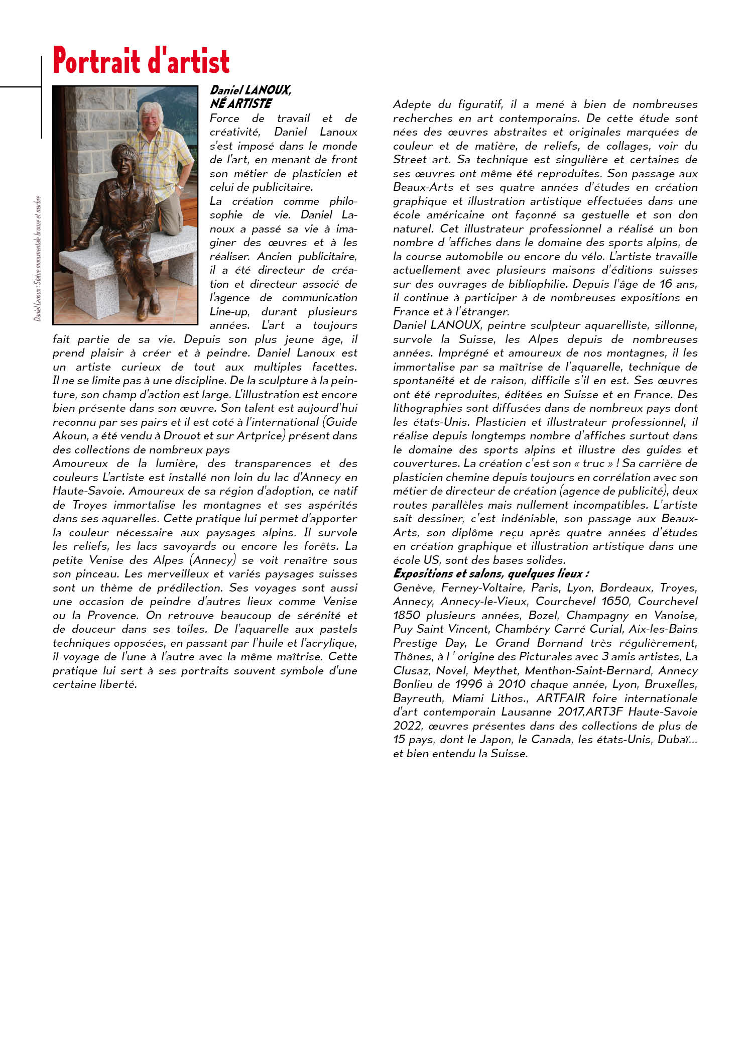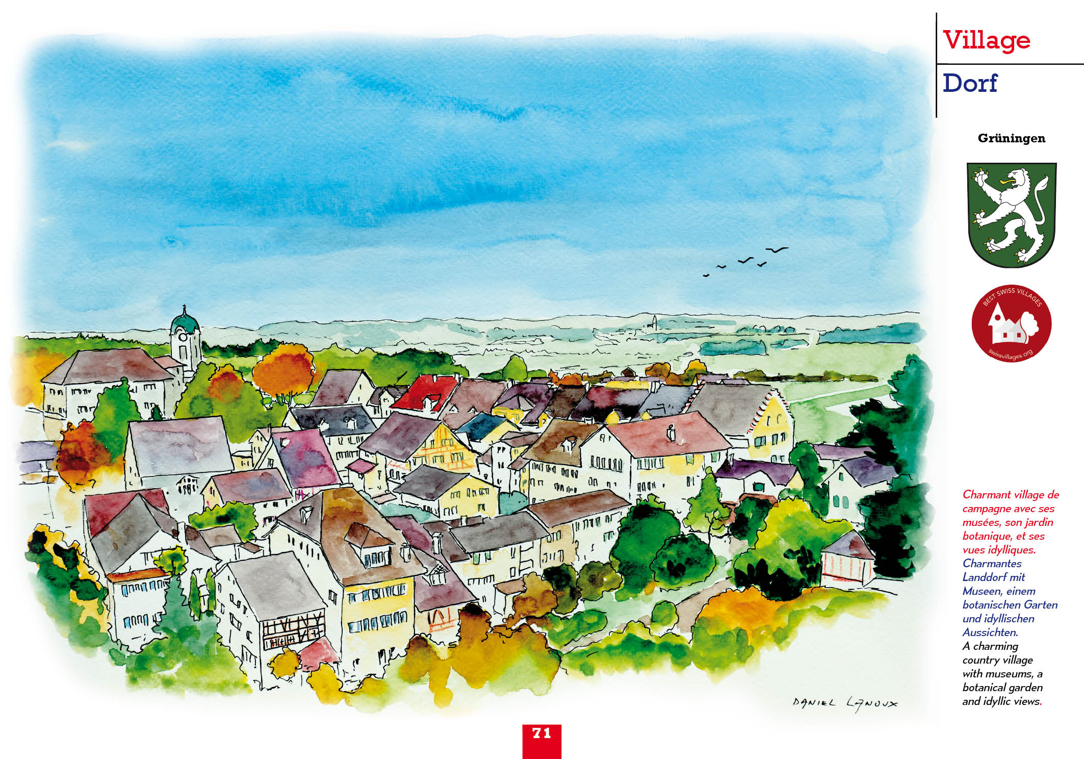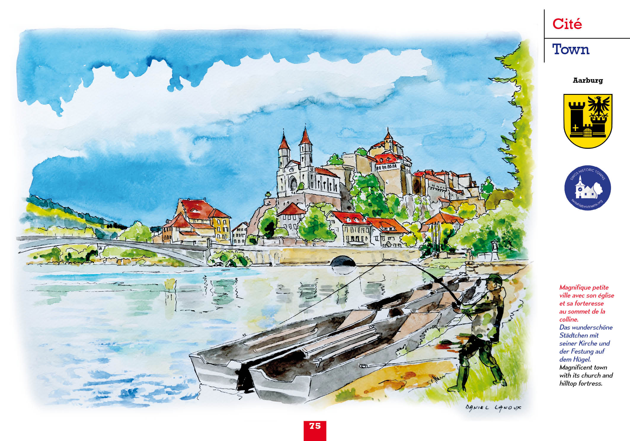 Daniel Lanoux, artiste peintre, plasticien et publicitaire, livre son regard coloré sur les 26 cantons et au-delà. Plus de 200 aquarelles traduisent son sens du paysage et de l’architecture.