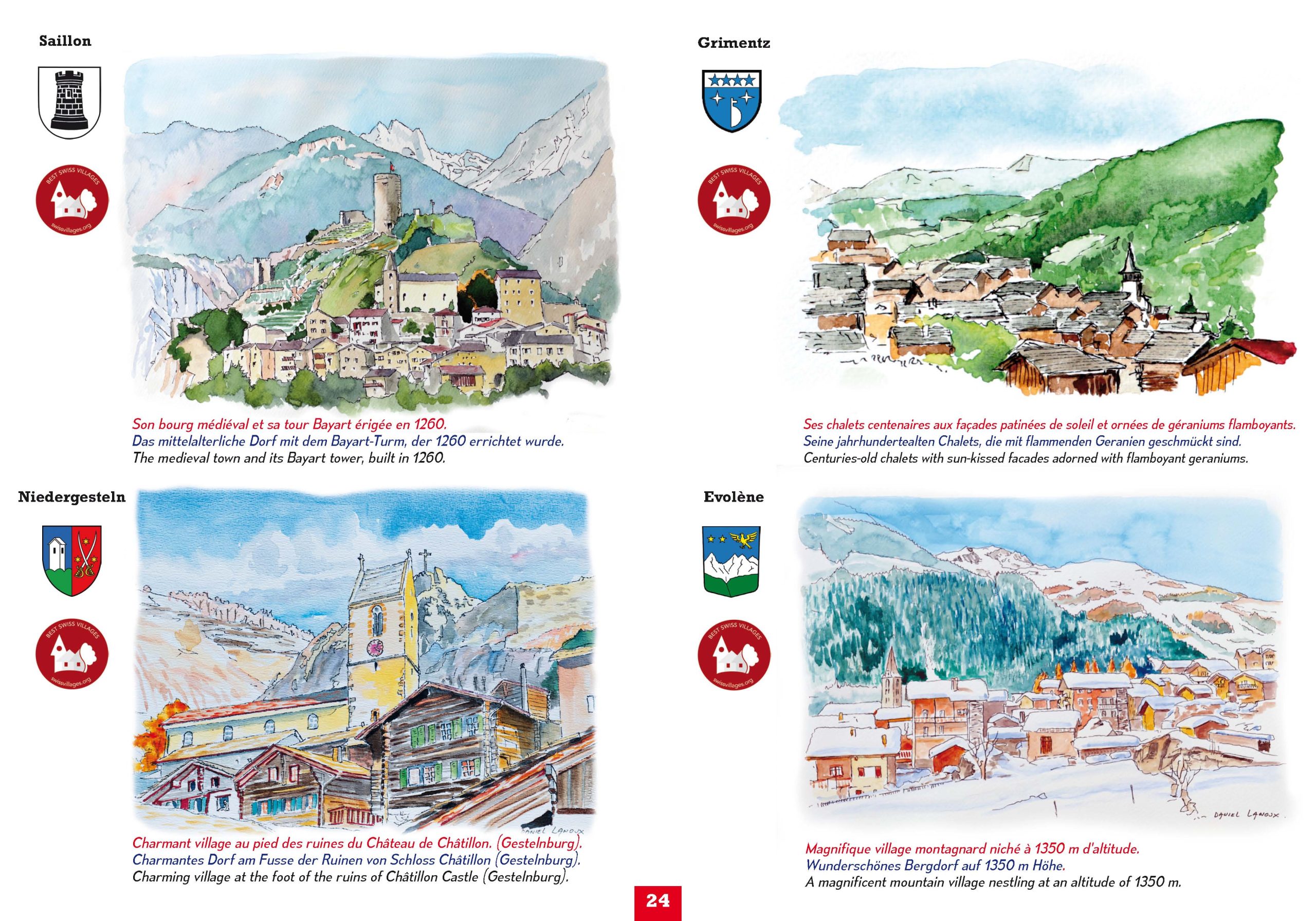 Format 30 × 21 cm, 128 pages, trilingue (français, allemand, anglais), il présente plus de 200 aquarelles originales. L’ouvrage est préfacé par M. Guy Parmelin, Conseiller fédéral et chef du Département fédéral de l’économie, de la formation et de la recherche.