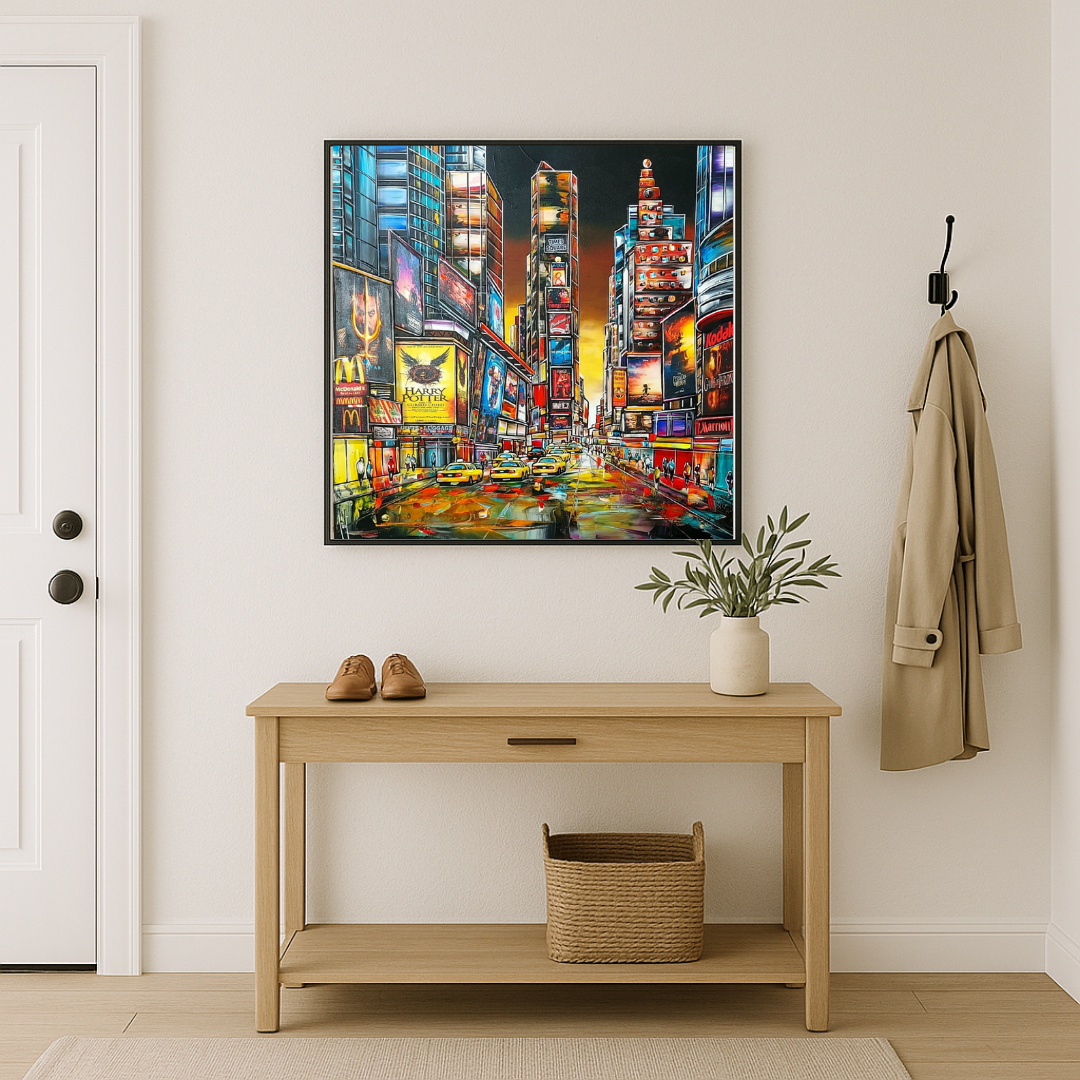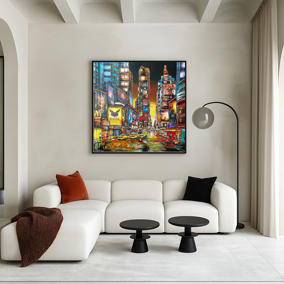 Un tableau immersif, parfait pour les amoureux de grandes métropoles, de scènes de vie électrique, ou des icônes visuelles qui font de New York une capitale culturelle mondiale.