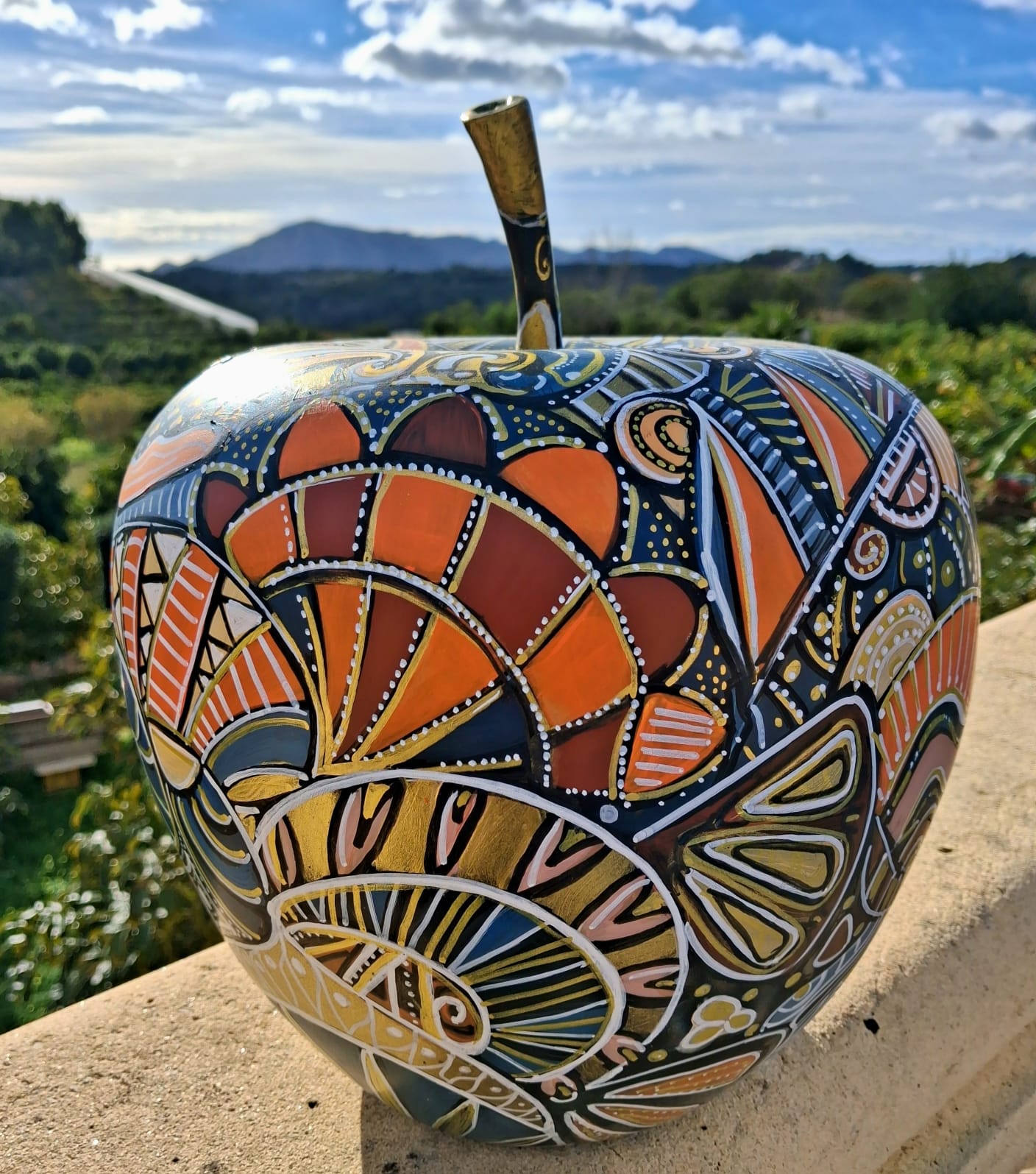 Created under the LUSTART brand, founded by the artist in 2018, this apple reflects Céline Lust’s signature geometric universe, characterized by rhythmic patterns, warm tones, and a strong graphic language. Each sculpture is made in Spain, ensuring high-quality craftsmanship and durability.