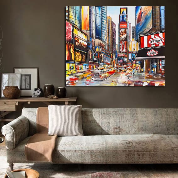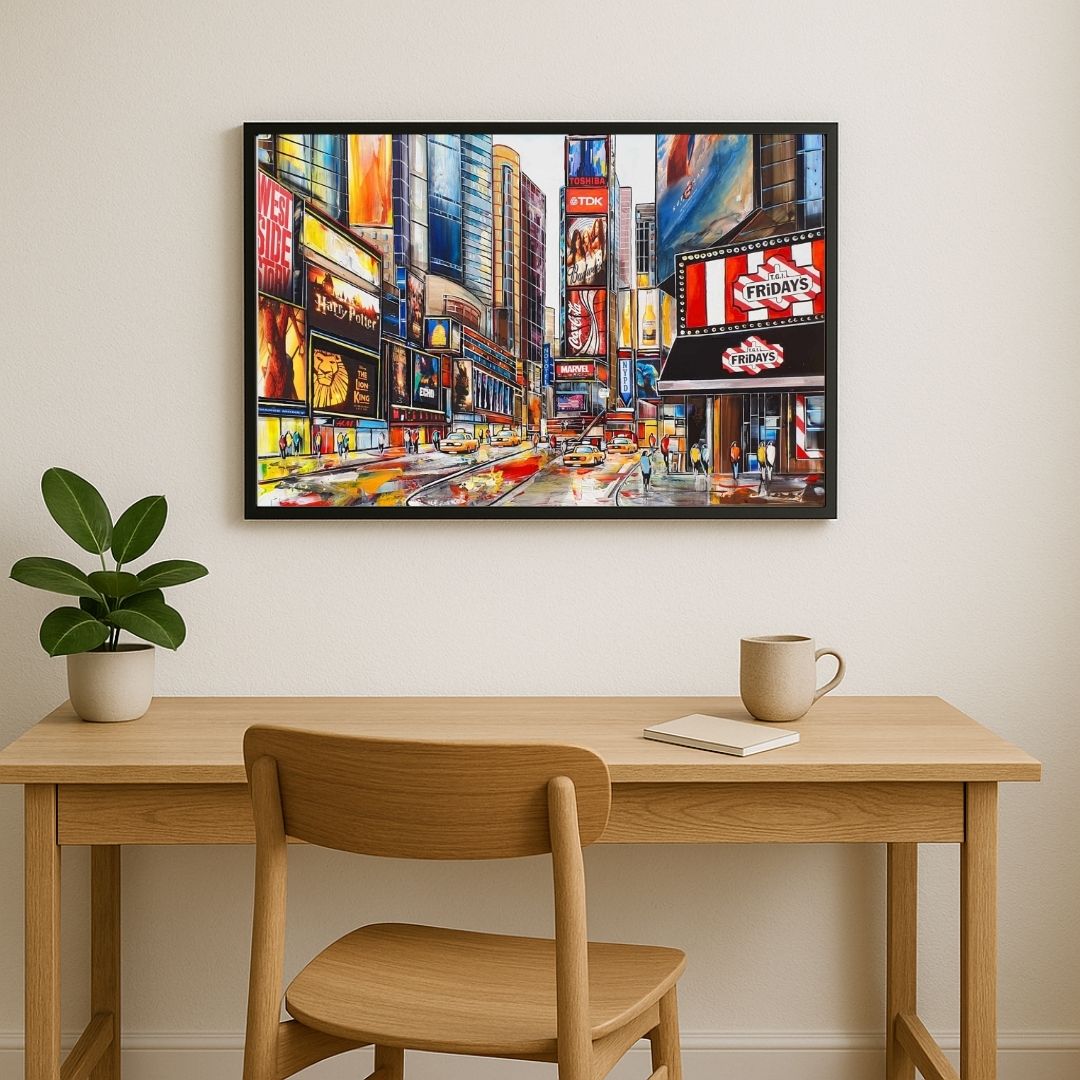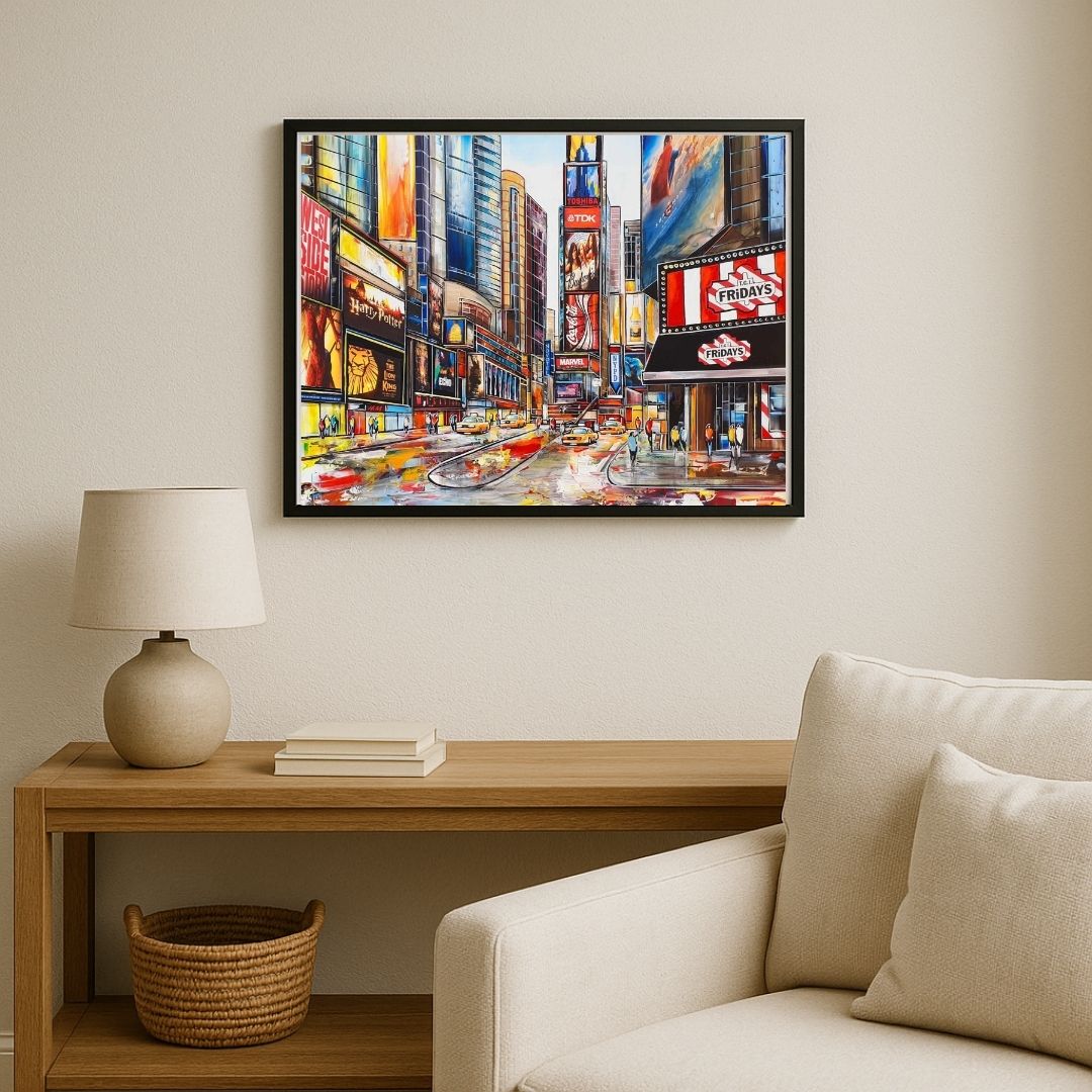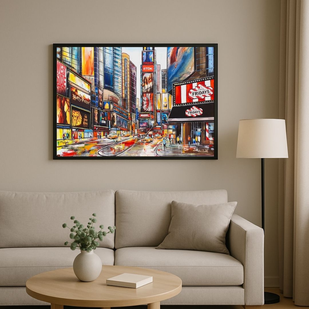 True to her contemporary figurative style, Céline Lust transforms the city into a stage of light, rhythm and energy. Times Square, Fridays – New York is a striking statement piece, perfect for collectors of urban art and lovers of New York’s iconic imagery.