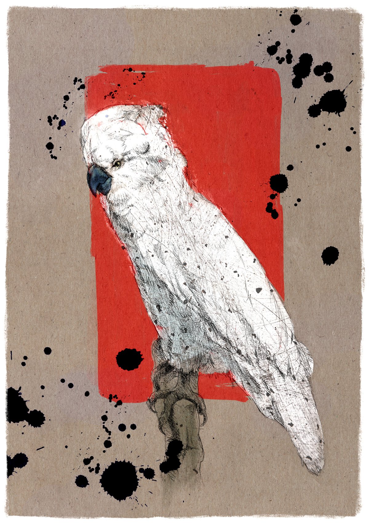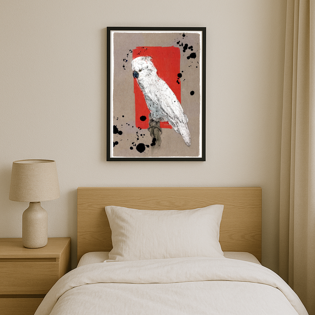 Raven 5 presents a dark crow standing against a blazing red sun. Using charcoal, pastels and digital accents, the artwork evokes a quiet, mysterious tension. The bird stands like a guardian, poised between light and shadow.