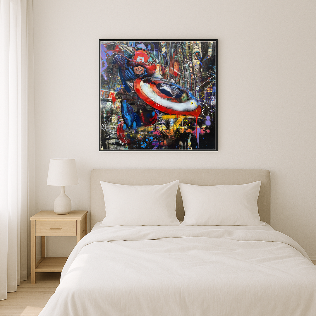 Perfect for modern interiors, urban lofts, galleries or collectors of pop culture and superhero art.