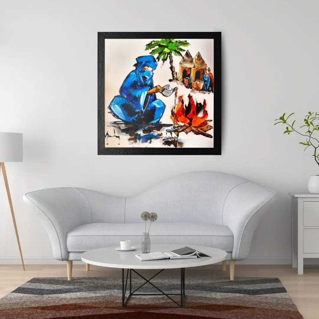 Disponible en deux formats – 80 x 80 cm et 100 x 100 cm – ce tableau habille l’espace avec caractère et chaleur. Il est livré avec son certificat d’authenticité signé par l’artiste, garantissant l’originalité et la valeur de l’œuvre.