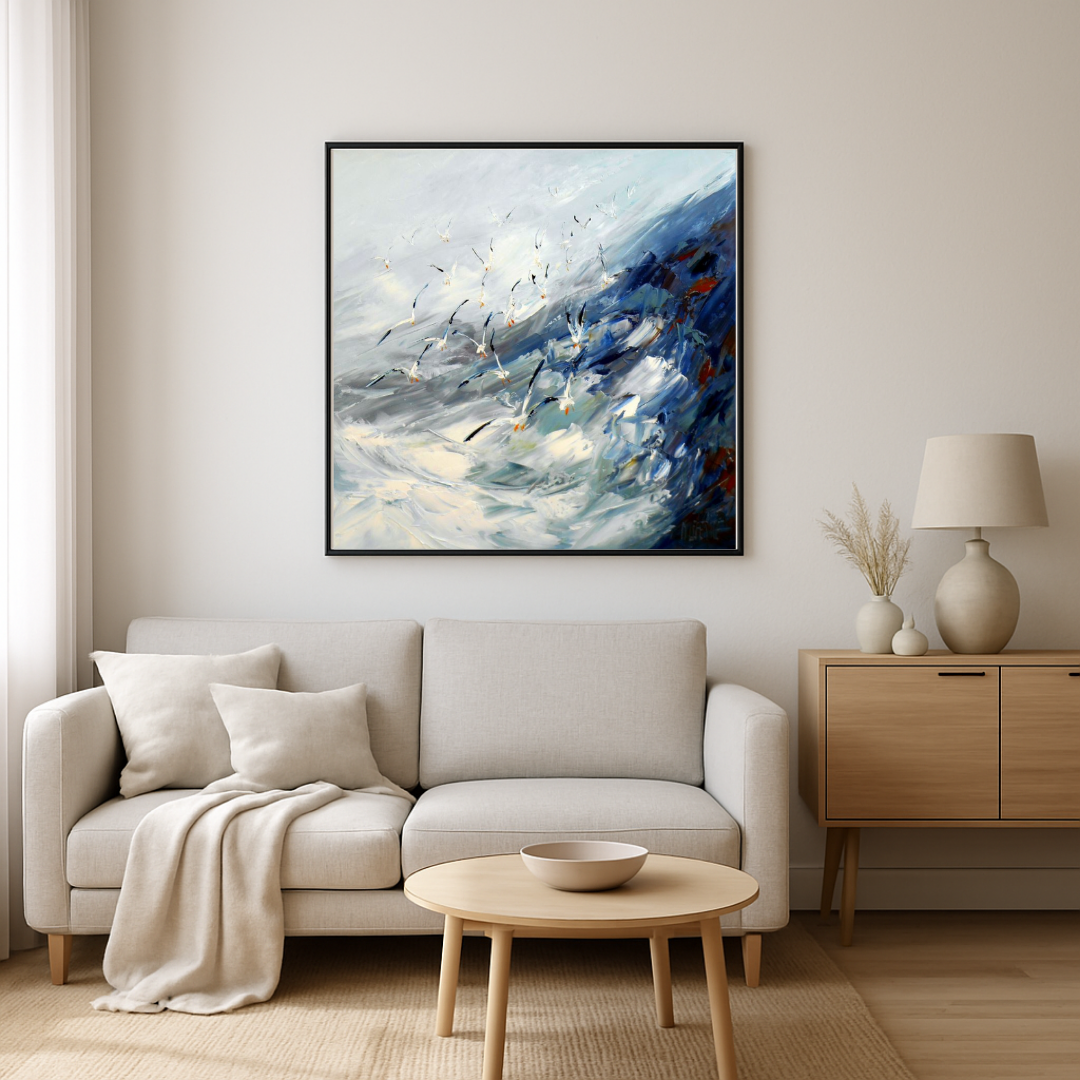 Un tableau puissant et aérien, parfait pour ceux qui aiment les scènes marines, la poésie du mouvement et l’élan vers le large.