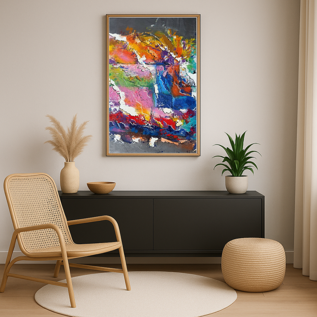 Une œuvre contemporaine percutante, idéale pour les amateurs d’abstraction lyrique et de compositions vibrantes.
